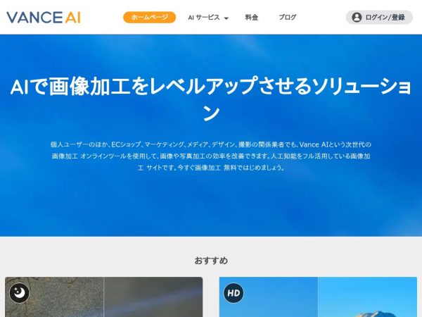 Vance AIではI画像拡大の機能のほか、AIノイズ除去、AIシャーペン(シャープ化)という三つの主要機能を提供しています。初心者でも簡単にブラウザ上で高いコントロールのレベルで美しい加工画像を作ることができます。無料で使えるのは月に画像が5点をまでとなります。